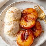 Once done, carefully remove the peaches (they’ll be hot!) and serve immediately. My favorite way is with a scoop of vanilla ice cream or creamy vanilla yogurt—both options balance the warm, sweet peaches perfectly.