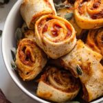 For parties, I like arranging the pizza rolls around a small bowl of marinara or garlic butter dip on a platter. You could also thread them onto skewers with cherry tomatoes and fresh basil leaves for a fun pizza skewer appetizer. It’s always a hit and looks super cute!