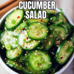 I keep leftover Asian Cucumber Salad in an airtight container in the fridge, but I’ve noticed the cucumbers start releasing water after a day or two, making the salad slightly soggy. To avoid this, I sometimes keep the dressing separate and toss everything together just before serving if I plan to have leftovers.