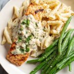 Boursin Salmon is a flavorful and creamy dish featuring tender seared salmon cooked in a savory Boursin cheese and herb sauce with garlic, onions, and fresh parsley. This recipe delivers a simple yet elegant meal perfect for dinner.
