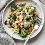 A vibrant and healthy Chopped Broccoli and Chickpea Salad featuring crunchy vegetables, creamy goat cheese, and a tangy lemon tahini dressing. Perfect for a refreshing lunch or a light dinner.