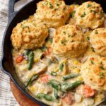 If I’m making this for guests or a special occasion, I sometimes prepare individual servings in ramekins or small oven-safe bowls, topping each with its own cheddar bay biscuit. It’s fun, elegant, and lets everyone have their own perfectly portioned pot pie, which always gets compliments!