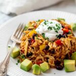 - Cool and Serve: Remove the casserole from the oven and let it cool for 5-10 minutes before serving. Garnish with fresh cilantro, green onions, salsa, and avocado if desired for added flavor and freshness.
