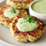 Delicious and juicy Chicken Zucchini Poppers made with ground chicken, shredded zucchini, and fresh herbs, served with a creamy cilantro dipping sauce. Perfect for a healthy snack or appetizer, these patties are pan-fried to golden perfection and bursting with flavor.