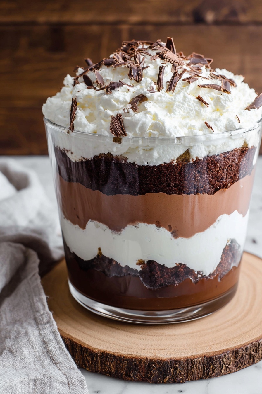 I’ve had great luck assembling individual trifles in mason jars for parties—it’s a crowd-pleaser and makes serving a breeze. For a special celebration, layering in a clear glass trifle bowl allows everyone to admire the gorgeous chocolatey layers before digging in. You can even alternate with layers of crushed cookies or caramel drizzle to mix things up visually and taste-wise.