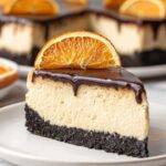 A rich and creamy Chocolate Orange Cheesecake featuring a crunchy Oreo crust, a zesty orange-flavored cheesecake filling, and a smooth dark chocolate ganache topping. This elegant dessert balances citrus brightness with deep chocolate notes, perfect for special occasions or indulgent treats.