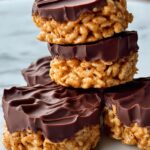 Delicious and easy-to-make Chocolate Peanut Butter Rice Krispy Cups perfect for a sweet snack or dessert. These no-bake treats feature a crunchy peanut butter and honey base coated with crispy cereal and topped with melted semi-sweet chocolate.