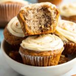 - Swirl Cream Cheese: Top each muffin with about 1 tablespoon of the cream cheese mixture. Use a toothpick to gently swirl it into the banana batter, creating a marbled effect.