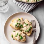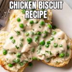 Creamed Chicken Over Biscuits is a comforting dish featuring tender chicken in a creamy tarragon sauce with peas, served over fluffy homemade country biscuits. Perfect for a cozy meal, this recipe combines a rich, velvety sauce with savory flavors and easy-to-make biscuits.