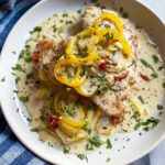 Creamy Pepperoncini Chicken Skillet is a flavorful and easy-to-make dish featuring tender chicken strips cooked in a rich and tangy creamy sauce made with pepperoncini peppers, roasted red peppers, garlic, and parmesan cheese. Perfect for a comforting meal served with vegetables, pasta, or rice.