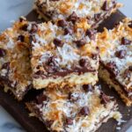 Magic Coconut Bars are a decadent and irresistible treat combining a buttery graham cracker crust, a rich coconut and chocolate chip topping, and a smooth condensed milk drizzle. These bars are baked to perfection, offering a delightful balance of crunchy, sweet, and nutty flavors perfect for dessert or snacking.
