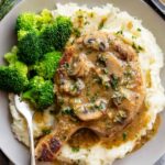 When the pork chops are done baking, carefully return them to the skillet, nestling them in that luscious onion mushroom gravy. Spoon the sauce generously over each chop and serve immediately while everything’s beautifully hot.