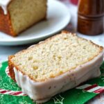 A festive and moist Holiday Eggnog Bread infused with warm spices and creamy eggnog, topped with a sweet eggnog glaze and a sprinkle of nutmeg, perfect for seasonal gatherings and holiday breakfasts.