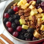 Add the grapes, blackberries, and pecans to the bowl with your dressing. Quickly toss everything to coat those flavors seamlessly. Then fold in the apple cubes last and give it another gentle toss so the apples don’t get mushy. Serve immediately for the best crunch and freshness, or cover and refrigerate until you’re ready to enjoy.