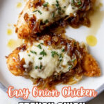 French Onion Chicken is a deliciously savory dish featuring tender chicken cutlets topped with caramelized onions, melted Gruyère cheese, and a rich balsamic-infused sauce. Perfect for a comforting dinner that combines the flavors of classic French onion soup with succulent chicken.