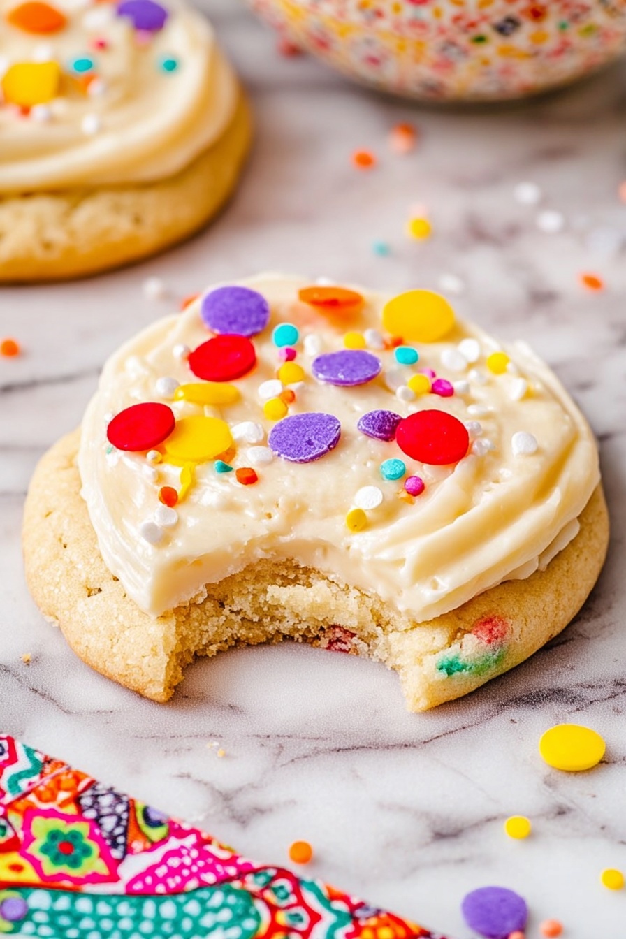 - Garnish with Sprinkles: Evenly sprinkle confetti or rainbow sprinkles over the frosted cookies for a festive finish.