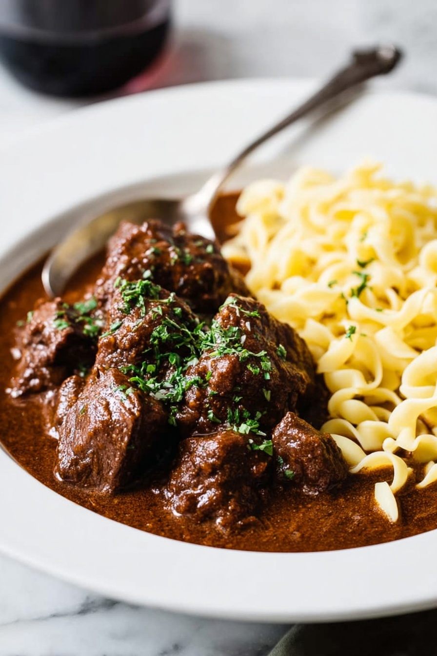 I always sprinkle freshly chopped parsley on top right before serving—it adds a pop of color and a fresh, herbaceous note that brightens the rich stew instantly. Sometimes, I’ll dollop a spoonful of sour cream on the side; it adds a luscious creaminess that softens the spices beautifully.