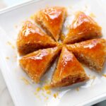 When your cake has cooled for about 15 minutes, cut it into the shapes you like best—squares, diamonds, or triangles. Pour the honey reduction over the cake, letting it soak in for that signature sticky sweetness. I usually garnish with some toasted walnuts, a sprinkle of orange zest, and sometimes a dollop of whipped cream for that extra indulgence.