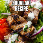 This Greek Chicken Souvlaki recipe features tender, marinated chicken pieces seasoned with traditional Greek herbs and spices. The chicken is skewered and grilled or cooked using alternative methods like air frying or oven baking for a juicy, flavorful dish perfect for a Mediterranean-inspired meal.