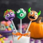 - Decorate Pops: Use candy eyeballs, assorted sprinkles, and black decorating gel to decorate the cake pops as desired. Refer to the notes for decorating tips.