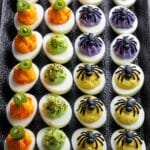 I love encouraging you to make this Halloween Deviled Eggs Spectacular Recipe your own! I mix up the colors and garnishes depending on the crowd and how festive I want to get. Play around with spicy mayo, swap herbs, or even add a dash of smoked paprika for a little twist on the classic flavor.