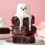I’ve frozen these brownies on a tray first, then wrapped them individually in plastic wrap and sealed in a freezer bag. When thawed overnight in the fridge, the marshmallow ghosts stay surprisingly fluffy and the chocolate doesn’t crack — perfect for making ahead for a Halloween party.