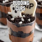 You can assemble the pudding cups up to a day in advance; just keep the decorative elements like ghosts, trees, and tombstones separate until right before serving. This keeps them looking fresh and prevents melting.