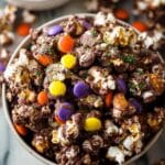 This Halloween Popcorn recipe combines sweet and salty flavors with a festive mix of semisweet chocolate, candy corn, peanut M&Ms, mini marshmallows, and colorful sprinkles. Perfect for a fun and easy holiday treat, it requires no baking and is ready in under an hour.