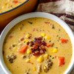 Hearty and comforting Cowboy Soup combines ground beef, creamy cheese, fresh vegetables, and bold spices in a rich broth, perfect for a satisfying meal any day.