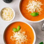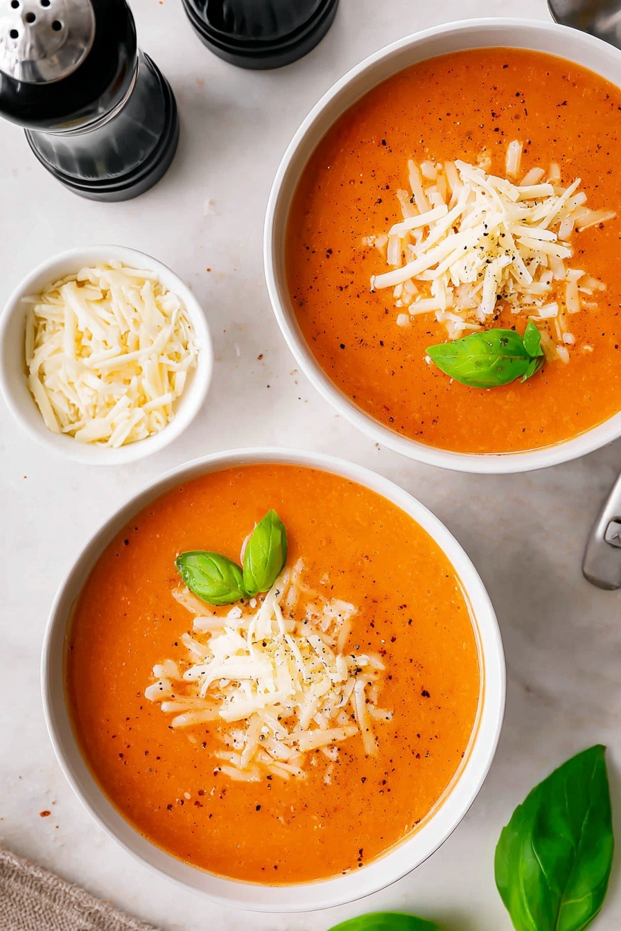 Pour the blended soup back into your pot to warm through if needed. Adjust pepper and seasonings one last time. Ladle into bowls and garnish with freshly grated Parmesan and a sprinkle of fresh basil leaves if you’re feeling fancy. Grab a crusty bread or a grilled cheese to dunk, and dive in!