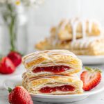 Homemade Strawberry Toaster Strudel is a delightful pastry treat featuring flaky puff pastry filled with sweet strawberry jam, baked to golden perfection and topped with a smooth vanilla glaze. Perfect for breakfast or a sweet snack.