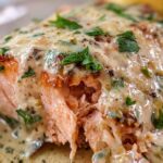 This Baked Salmon with Lemon Butter Cream Sauce recipe features tender, flavorful salmon fillets baked to perfection and topped with a rich, creamy lemon butter garlic sauce. It is a delightfully simple yet elegant dish perfect for a healthy weeknight dinner or special occasion.
