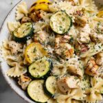 A bright and flavorful Lemon Chicken Pasta recipe featuring tender chicken breasts, fresh vegetables, and a zesty lemon sauce tossed with mini farfalle pasta and topped with freshly grated parmesan cheese and parsley.