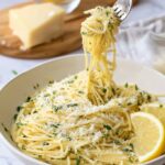 A bright and zesty lemon pasta recipe featuring al dente spaghetti tossed with a fragrant garlic, parsley, and red pepper olive oil sauce, finished with freshly grated parmesan cheese. Perfect as a quick and flavorful weeknight meal.
