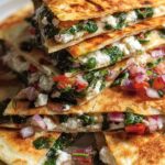 These Mediterranean Quesadillas combine fresh spinach, tangy feta, creamy mozzarella, and zesty red onion folded into warm flour tortillas. Perfect as a quick and flavorful appetizer or light meal, they offer a delightful blend of Mediterranean flavors with crispy golden edges and melty cheese inside.