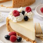 This is the fun part! I usually top mine with fresh berries and a few dollops of whipped cream, but a drizzle of chocolate or a scattering of toasted coconut can be just as stunning. Keep it refrigerated until ready to serve and slice carefully with a hot knife for clean edges. You’ll be amazed at how creamy yet firm it is without ever seeing an oven.