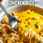 A creamy, flavorful one-pot dish combining tender chicken, cheesy queso sauce, and perfectly cooked rice, seasoned with cumin and chili powder for a comforting and easy meal.