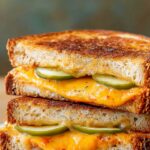 A delicious and easy Pickle Grilled Cheese Sandwich featuring melted cheddar cheese, tangy kosher dill pickles, and a hint of dried dill, all grilled to golden perfection. Optional hot sauce adds a spicy kick for extra flavor.