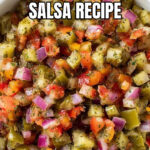 You can, but using dill pickles is key to achieving that tangy, savory flavor that defines this salsa. Sweet pickles will make the salsa taste sweeter and less bright, which might not deliver the same punch. If you only have sweet pickles, consider adding a splash more pickle juice or a bit of vinegar to balance the taste.