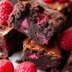 Delicious homemade raspberry brownies featuring rich chocolate brownie batter swirled with raspberry jam and studded with fresh raspberries for a sweet and tangy twist on a classic dessert.