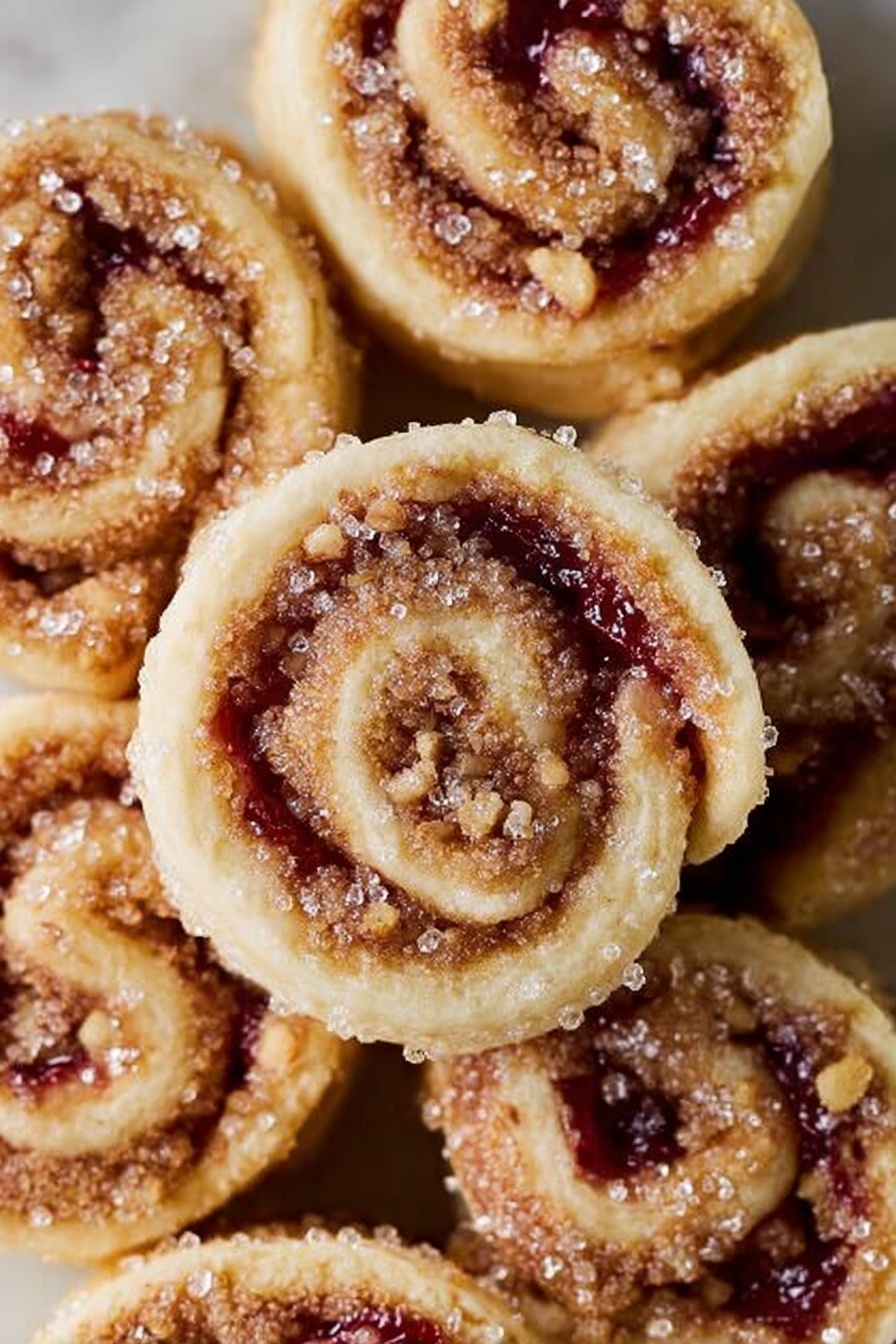 Delight in these Raspberry Pinwheel Cookies featuring a buttery cream cheese dough layered with sweet raspberry jam and crunchy walnuts, rolled and baked to golden perfection with a sparkling sugar coating.