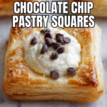 Delightful Ricotta Chocolate Chip Pastry Squares made with flaky puff pastry, creamy ricotta cheese, and sweet chocolate chips, topped with a sprinkle of coarse sugar for a perfect crunchy finish.