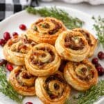 Delight in these savory and sweet Sausage Cranberry Brie Bites featuring tender Italian sausage, melted brie, and tart cranberry sauce wrapped in flaky puff pastry. Perfect as an appetizer or party snack, these bite-sized pastries combine aromatic herbs with creamy cheese and a hint of sweetness for an irresistible treat.