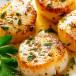 A simple and elegant Pan Seared Scallops recipe featuring large sea scallops cooked to a golden crust and served with a flavorful garlic herb butter sauce combining lemon, garlic, thyme, and parsley.
