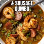 This Shrimp and Sausage Gumbo is a rich and flavorful Louisiana classic featuring a golden-brown roux, smoky sausage, tender shrimp, and fresh vegetables simmered to perfection. Aromatic cajun seasoning and fire-roasted tomatoes enhance its depth, while frozen okra adds authentic texture. Perfect for a hearty dinner, this gumbo combines traditional Southern flavors with an easy-to-follow stovetop method.