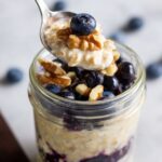 In the morning, you can eat your overnight oats cold straight from the fridge or heat them in the microwave for about a minute if you prefer warm oats. Then comes the best part—toppings! I’m a fan of fresh or frozen blueberries, chopped walnuts, and some chopped dates with a drizzle of maple syrup. But honestly, go wild—add banana slices, a spoonful of peanut butter, sprinkle cinnamon, or toss in hemp seeds. Each combination feels like a mini celebration.