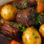 A hearty and comforting Slow Cooker Beef Stew packed with tender beef chuck, baby onions, carrots, and potatoes, simmered in rich red wine and beef broth with aromatic herbs. Perfect for an easy, flavorful main course that requires minimal active cooking time.