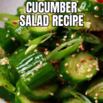 A refreshing and spicy cucumber salad featuring mini or Persian cucumbers dressed in a tangy soy and rice vinegar dressing with a hint of honey and chili flakes, garnished with green onions and sesame seeds. Perfect as a light side dish or appetizer.
