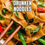 Drunken Noodles is a flavorful Thai stir-fry featuring wide rice noodles, marinated chicken, fresh vegetables, and a savory, slightly sweet sauce with soy, oyster, and fish sauce. This vibrant dish balances spicy heat from Thai bird’s eye chili with aromatic Thai basil, perfect for a quick and satisfying dinner.