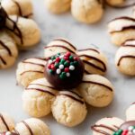 I love adding festive sprinkles or sanding sugar to my spritz cookies—especially around the holidays. Truth be told, I sometimes just press a few mini chocolate chips into the center and call it a day because they add such a delicious touch without any fuss. For a grown-up party, a drizzle of melted dark chocolate gives them a subtle richness that everyone swoons over.